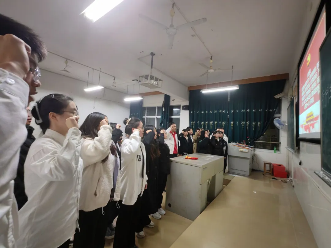 会议最后,卜嘉怡同志带领新发展的党员进行入党宣誓。党员们面向党旗,举起右拳庄严宣誓,铿锵有力的誓言表达了他们为党的事业不懈奋斗、终身奉献的坚定决心。党员同志们将铭记宣誓的神圣时刻,坚守党的信仰,积极学习党的理论,投身社会实践,锤炼党性修养,以实际行动践行党的宗旨,将誓词内化于心、外化于行,争取更大的进步。