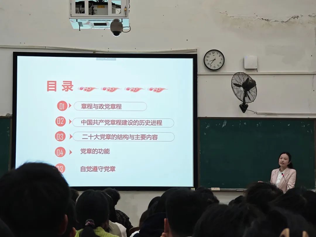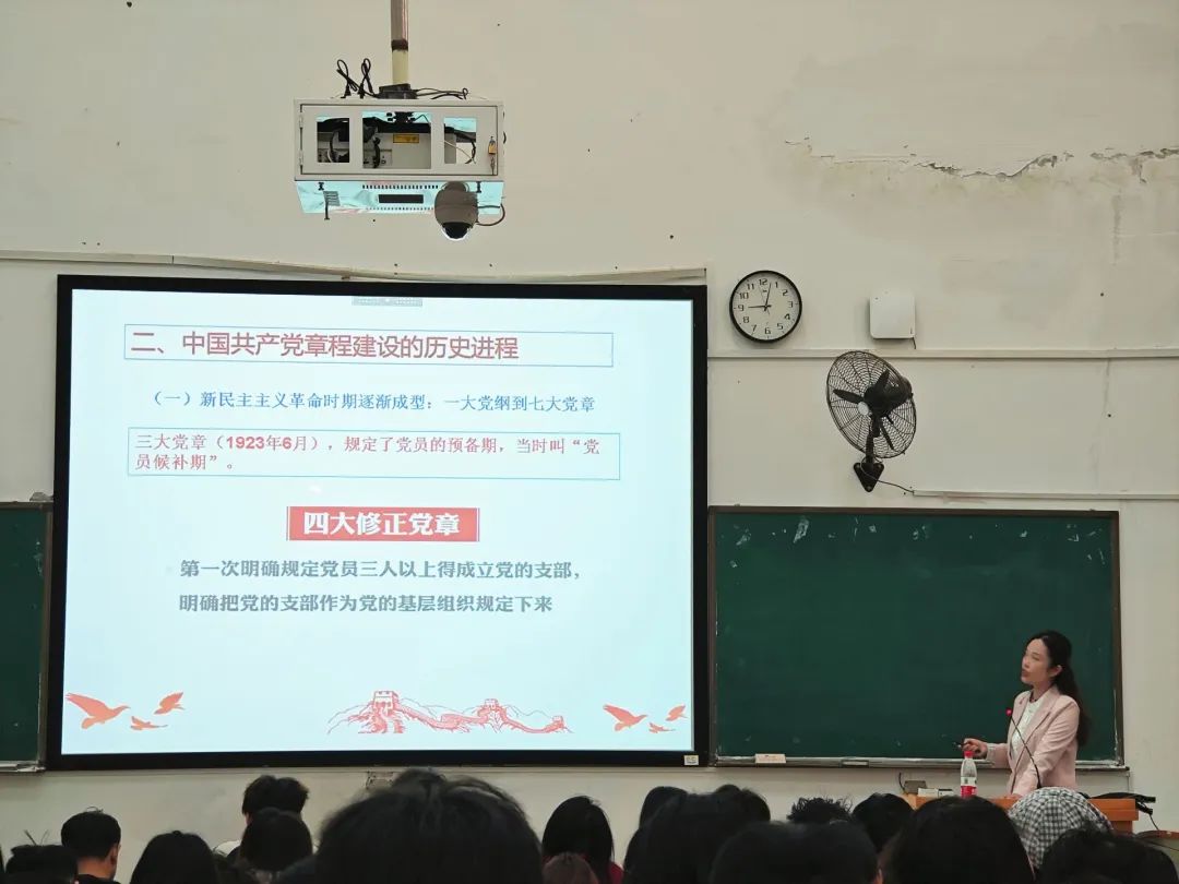 为加深第70期入党积极分子对《中国共产党章程》的学习,深刻理解中国共产党执政为民的理念和全心全意为人民服务的根本宗旨,10月20日上午8:30,计算机科学与技术公司党总支于外语楼101教室组织开展“学党章,敬党章,守党章”专题党课,由衡阳师范公司党委委员、校组织部部长唐艳为入党积极分子讲授党课。