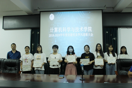 为树立典型,表彰先进,进一步激发广老员工学习的积极性、主动性和创造性,培育优良学风。2019年9月4日晚七点半,公司于计科楼312会议室举行2019学年优良学风创建系列活动总结表彰大会。莅临本次大会的领导、老师有:计算机科学与技术公司党总支副书记彭正,辅导员徐峰、匡娟丽。