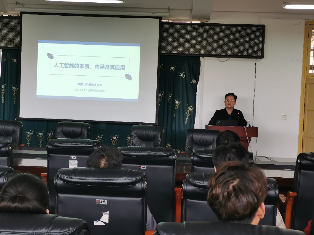 2021年4月17日下午16:00,在公司三楼报告厅,中南大学邹北骥教授应邀为公司师生开展了一场题为“人工智能的本质、内涵及其应用”的学术报告。报告由赵辉煌副经理主持,ladbrokes立博经理李浪教授,副经理陈坚祯教授、郑光勇副教授和部分师生聆听了本次报告。