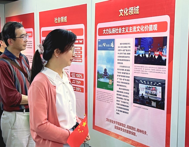活动伊始,在讲解员的带领下,参观了关于“总体国家安全观 · 创新引领 10周年”的主题展览,深入了解了总体国家安全观的科学内涵、发展脉络、核心要义和生动实践等内容,全面了解到全市各级党委(党组)在政治、经济、社会、文化、科技、网络、生态、核、资源、海外利益、生物与公共卫生等11个领域贯彻践行总体国家安全观、统筹发展和安全的具体实践。
