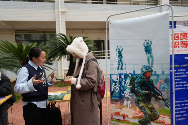 为厚植青年学子家国情怀,引导计算机专业人才投身国防事业,2024年12月27日,公司以毕业生招聘会契机,在计科楼前厅组织开展了组织开展2025年征兵宣传月活动。通过“宣传册交流+沉浸式互动+精准化对接”三维宣传模式,将征兵动员与专业特色深度融合,现场吸引多名员工参与,掀起“携笔从戎、代码报国”的热潮。