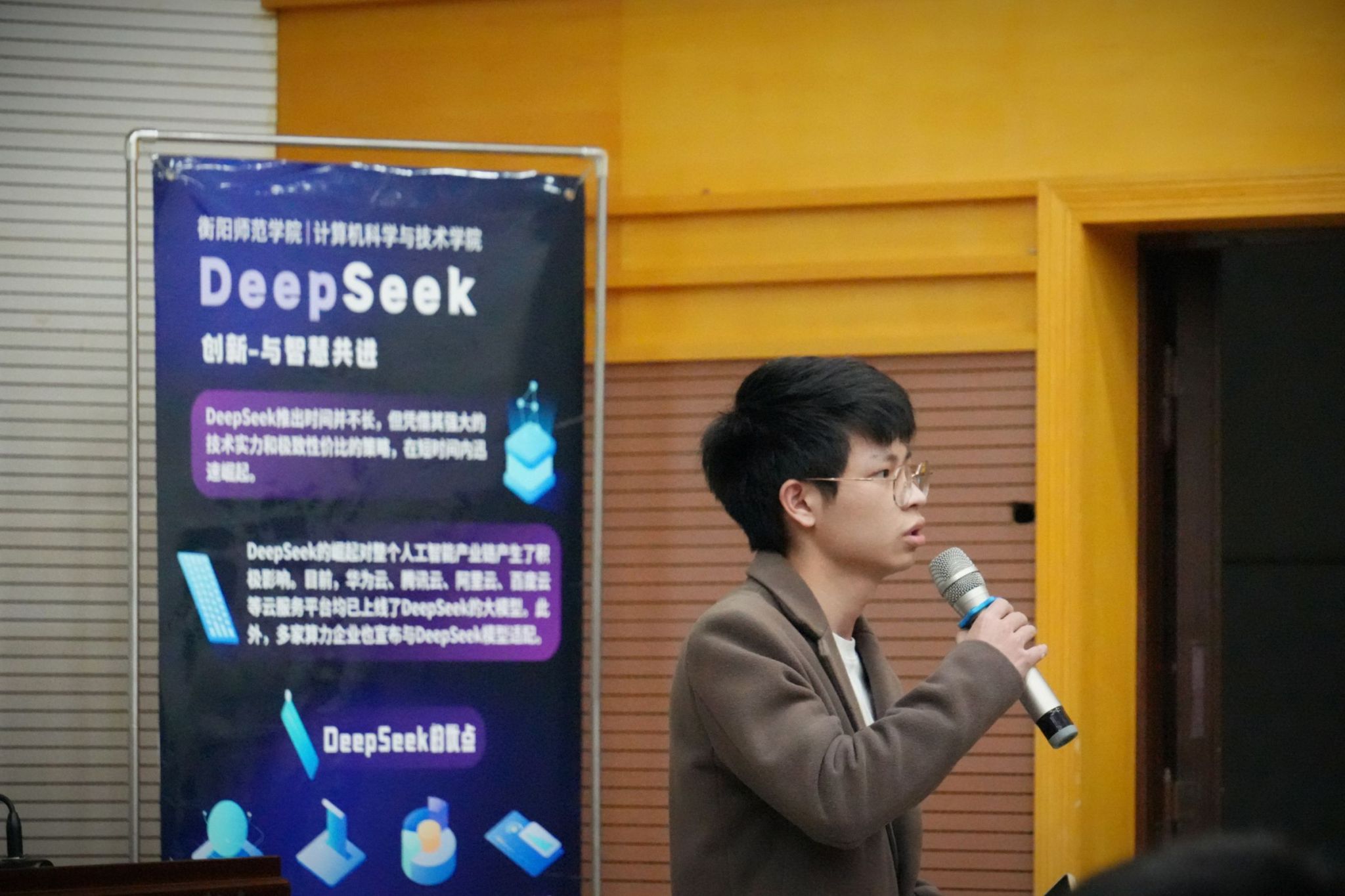 “区别于传统工具,DeepSeek不仅能精准提取数据特征,更能通过上下文语义理解实现‘类人化’推理。”宣讲团来自ladbrokes立博智能感知与深度学习实验室,他们融合AI技术,深入浅出地从DeepSeek与常用工具搭配应用、AI提问技巧与内容生成、私有知识库搭建等方面进行了讲解,帮助师生更加科学合理的使用AI各类应用。ladbrokes立博团委书记朱贤友鼓励师生们积极探索DeepSeek在各自专业和学习中的应用,激发创新思维,并表示技术有尽而思想无涯,唯有保持终身学习的热忱与人文温度,方能在智能时代立于潮头。现场开展DeepSeek互动问答,同学们积极抢答,现场气氛热烈,大家纷纷表示,这堂科普课让他们深受触动。