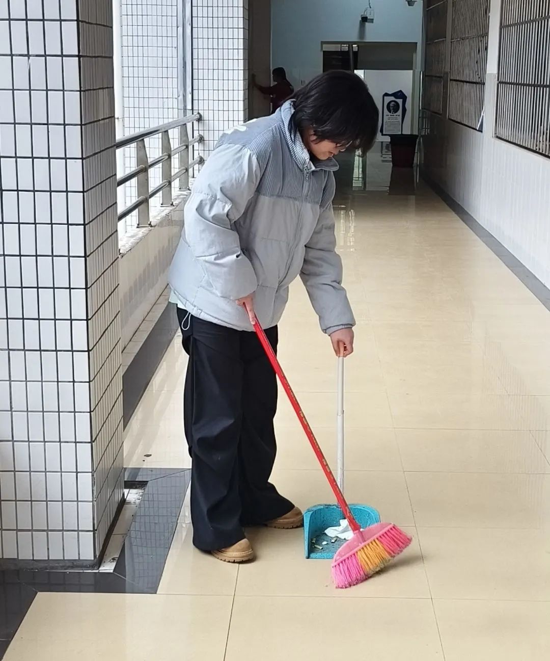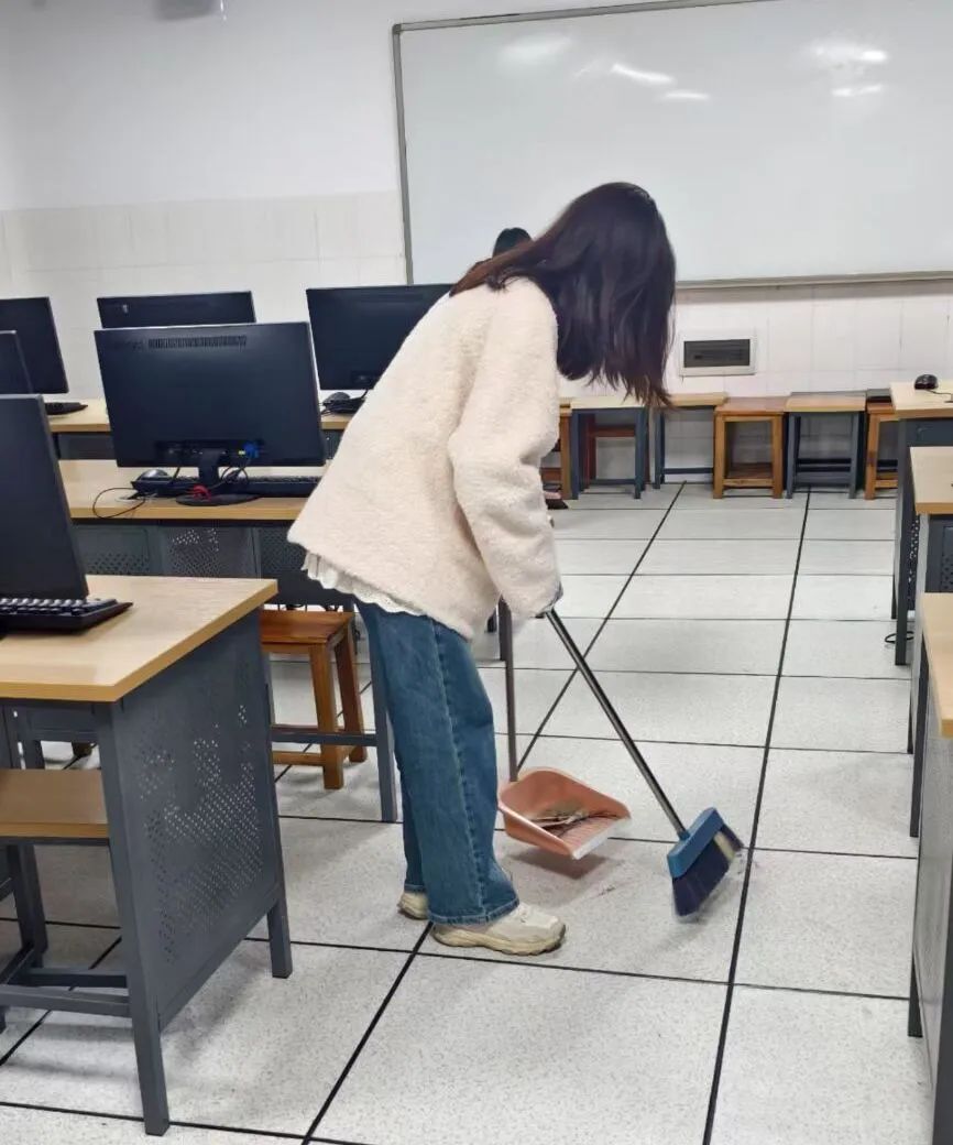活动当天,全体参与员工准时集合,在负责人的统筹安排下分组行动,迅速投入到紧张而有序的劳动中,对教学楼内的走廊、教室、卫生死角等进行了全面清理。活动中,同学们分工明确、协同合作,认真细致地清洁教学楼的每一个角落,充分展现出“不怕苦、不怕脏、不怕累”的奉献精神。经过数小时高效有序的劳动,教学楼环境焕然一新。