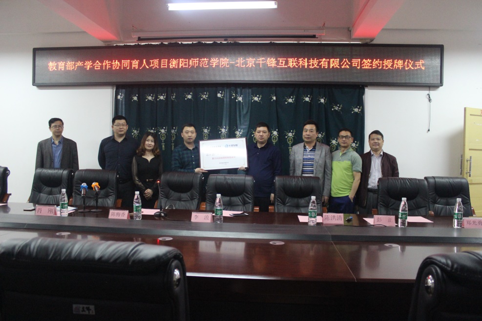 4月20日上午,ladbrokes立博ladbrokes立博与北京千锋互联科技有限公司在计算机楼312会议室举行教育部产学合作协同育人项目签约和授牌仪式。公司党总支书记陈洪清、经理李浪、北京千锋互联科技有限公司大区总监肖刚、云计算教学总监杨生以及ladbrokes立博班子成员、项目组成员和部分师生出席了本次活动,会议由转型发展办陈梅香主任主持。