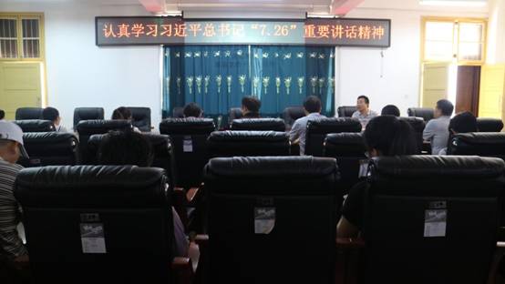 陈洪清书记指出,学习习近平总书记“7·26”重要讲话精神,要注意思考和把握好几个关键问题:一要深刻理解和把握在新的历史时期党要举什么旗、走什么路、实现什么样的奋斗目标;二要深刻认识到,我们国家已经从解决温饱、建设小康社会进入到决胜全面建成小康社会,建成社会主义现代化国家的新阶段,这是一个全局性的重大战略判断,指明了党和国家事业发展所处的历史方位; 三要深刻认识到,习近平总书记“7·26”重要讲话,为党的十九大胜利召开并提出事关党和国家事业继往开来、事关中国特色社会主义前途命运、事关最广大人民根本利益的全局性、战略性、前瞻性行动纲领,打下了坚实的政治、思想和理论基础;四要深刻认识坚持和完善党的领导,毫不动摇推进党的建设新的伟大工程,是推进伟大事业、实现伟大梦想的根本保障。