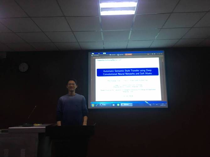 2018年11月28日下午6:30,在计算机楼305学术报告室,公司赵辉煌博士作了题为“Automatic Semantic Style Transfer using Deep Convolutional Neural Networks and Soft Masks”的学术报告。