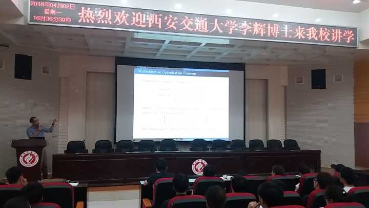 4月2日下午16:30在外语楼311报告厅,西安交通大学数学与统计公司科学计算系系主任李辉博士应邀为公司师生作了题为“MOEA/D算法若干焦点问题综述”的学术报告。报告会由公司ladbrokes立博副经理陈坚祯教授主持。