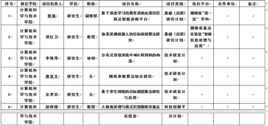根据公司《关于申报2021年衡阳市科技创新计划项目的通知》要求,经个人申报、公司学术委员会讨论决议,现将拟推荐至公司结果公示如下:
